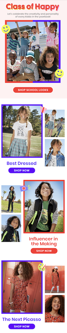 To create a cohesive and compelling message during their most profitable time of year I presented, wrote, and collaborated with multiple departments to create an effective back to school campaign.