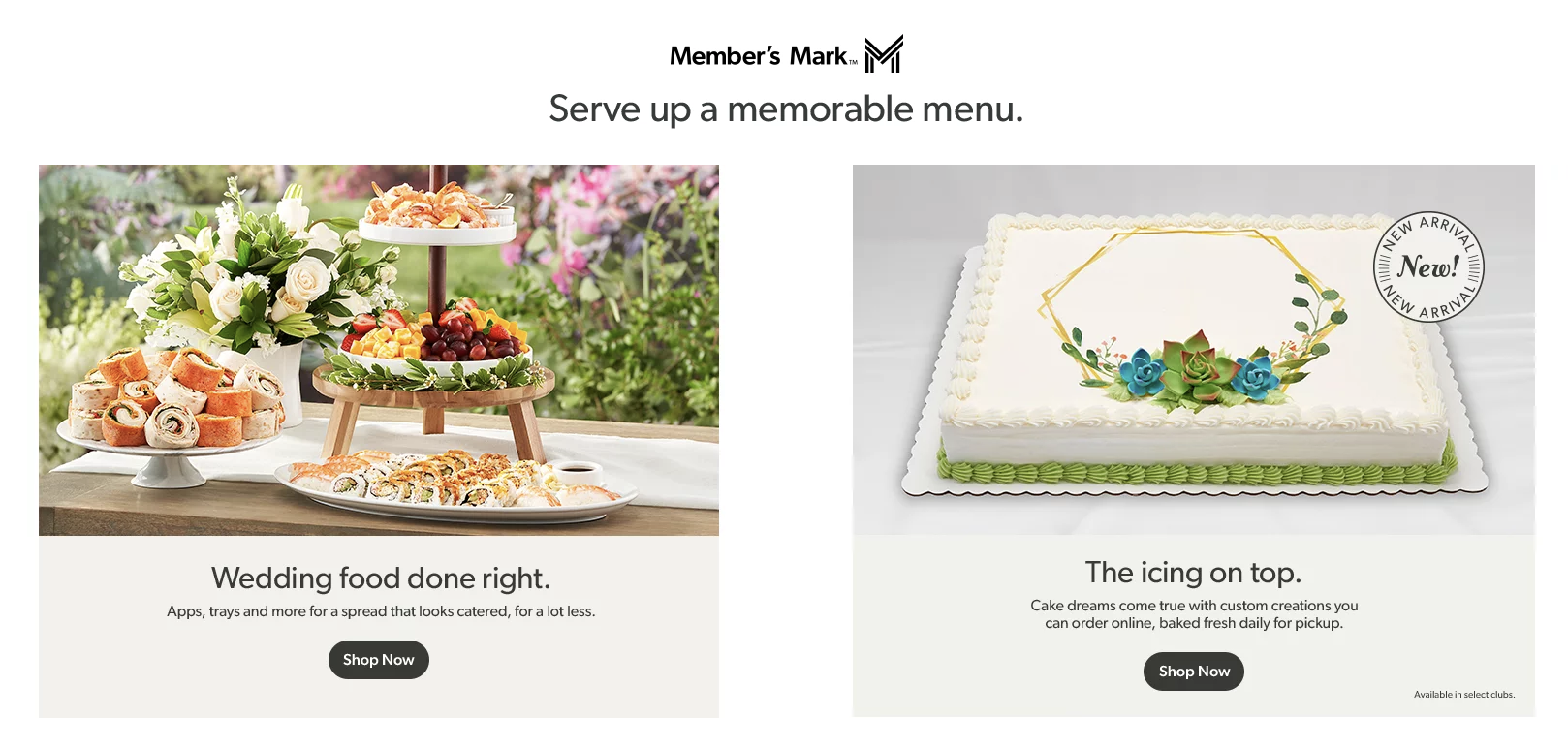Sam’s Club in-house brand Member’s Mark™ wanted to highlight to brides that they are a destination for all things wedding. The task was to communicate that all their wedding-ready products are great quality, ready to go, and at a great price. I had less than a week to pull it off and was able to create a beautiful suite of assets.